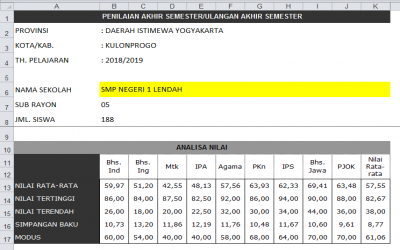 Nilai PAS 1 tahun pelajaran 2018- 2019 kabupaten Kulon Progo dapat diunduh di alamat berkut ini : Nilai PAS 1 Kab. Kulon Progo klas 7 (sudah direvi
