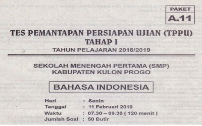 Hasil TPPU dan Soal-soal TPPU Tahap 1 Kabupaten Kulon Progo : Hasil TPPU Tahap 1 Soal Bhs Indonesia A11 Soal Bhs Indonesia A12 Soal Bhs Indonesi