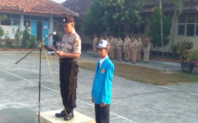 Kanit Intelkam Polsek Lendah Aiptu Iman Janadi menjadi pembina upacara dalam upacara bendera hari Senin 23 Juli 2019 di SMP Negeri 1 Lenda