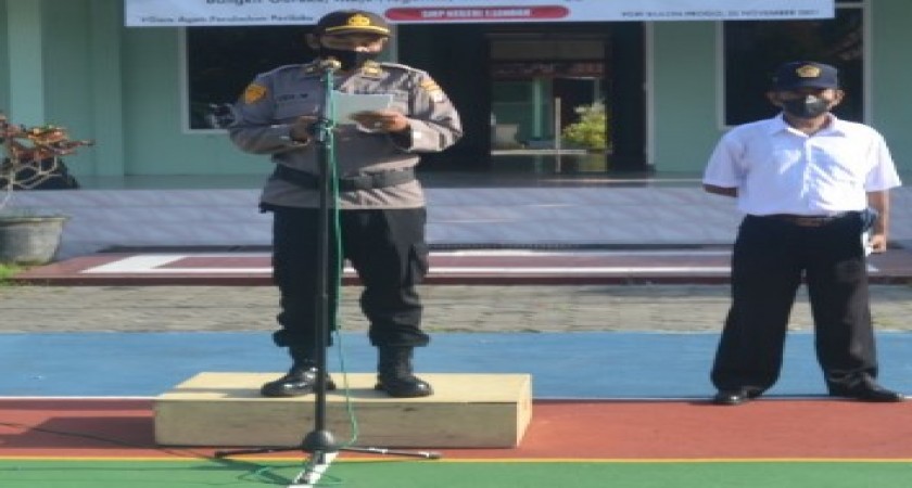 Bertindak sebagai pembina apel adalah, Waka Polres Kulon Progo, Kompol Sudarmawan, S.Pd, M.M dalam amanatnya membacakan amanat dari Kapolres Kulon Progo, AKBP Muharomah Fajarini, S.H, S.I.K. Dalam sambutannya beliau mengajak segenap keluarga besar SMP N 1 Lendah Untuk selalu mentaati prokes dan menjaga keamanan serta ketertiban. Dengan menciptakan Kulon Progo yang nyaman damai sejahtera siap go Internasional. Kemudian Inti amanat beliau berpesan kepada Siswa untuk berpegang teguh pada norma dan etika yang ada dalam falsafah Pancasila serta membentengi diri dengan meningkatkan iman dan taqwa. Menghindari kegiatan yang negatif yang mengarah pada kenakalan remaja, yang menjadi keprihatinan sekarang beberapa oknum anak sekolah yang bergabung dalam “komunitas genk kltih”. Diakhir acara pembina apel meminta sesi tanya jawab kepada siswa kemudian memberikan hadiah bagi siswa yang dapat menjawab pertanyaan dari beliau.